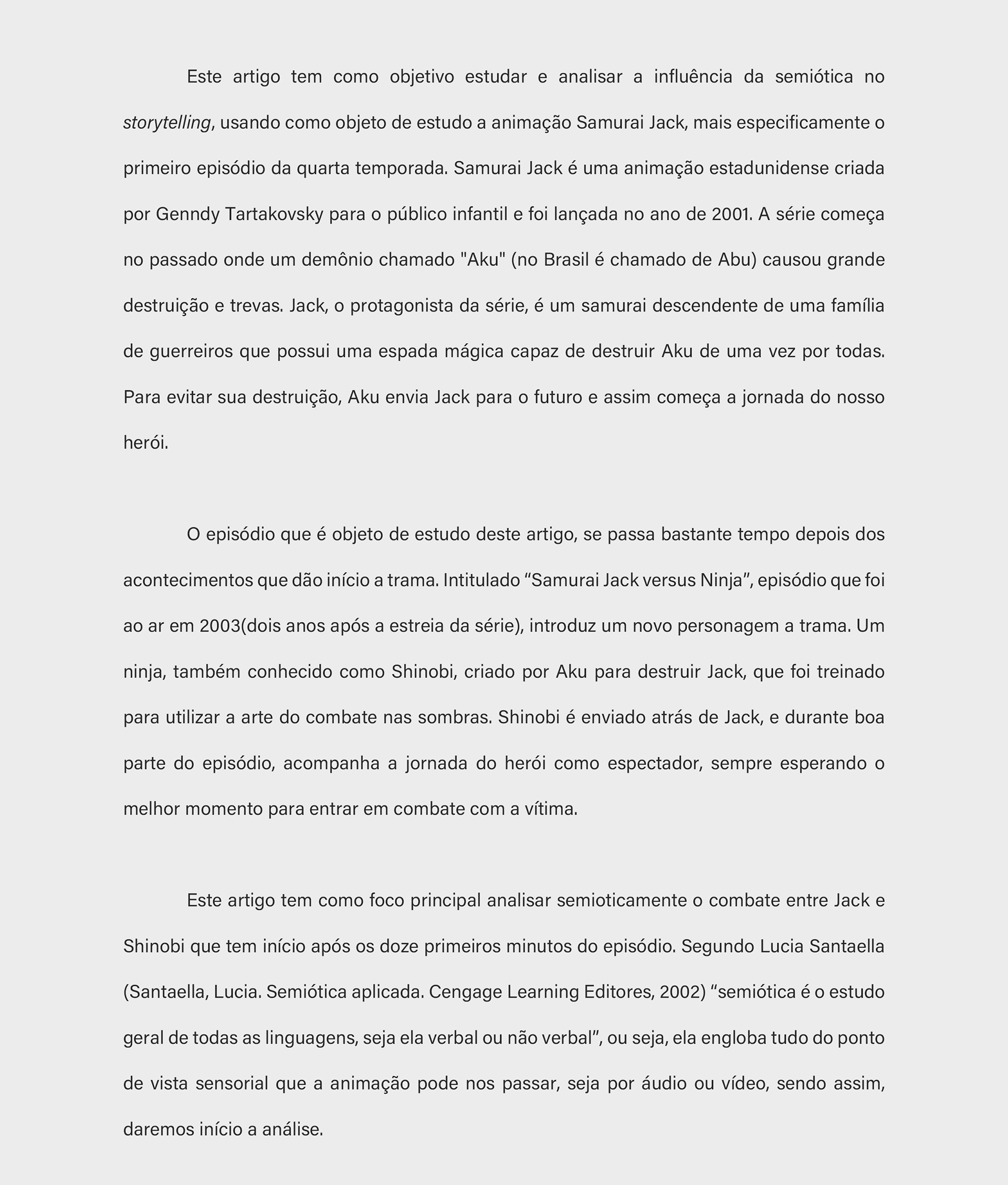 link do artigo completo: Analise semiótica de luz e sombra, aplicada a animação Samurai Jack